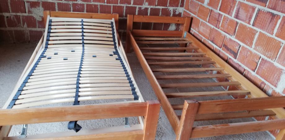 Prodajem drvene krevete 90x2oo,2 komada, jedan ima Basic podesivi podnicu 90x200, podesiva je i na uzglavlju i na podnožju-njegova cijena 85€, drugi ima povezane letvice njegova cijena 65€,može i u kompletu Sve po dogovoru. Ostali upiti na broj 098 974 9155