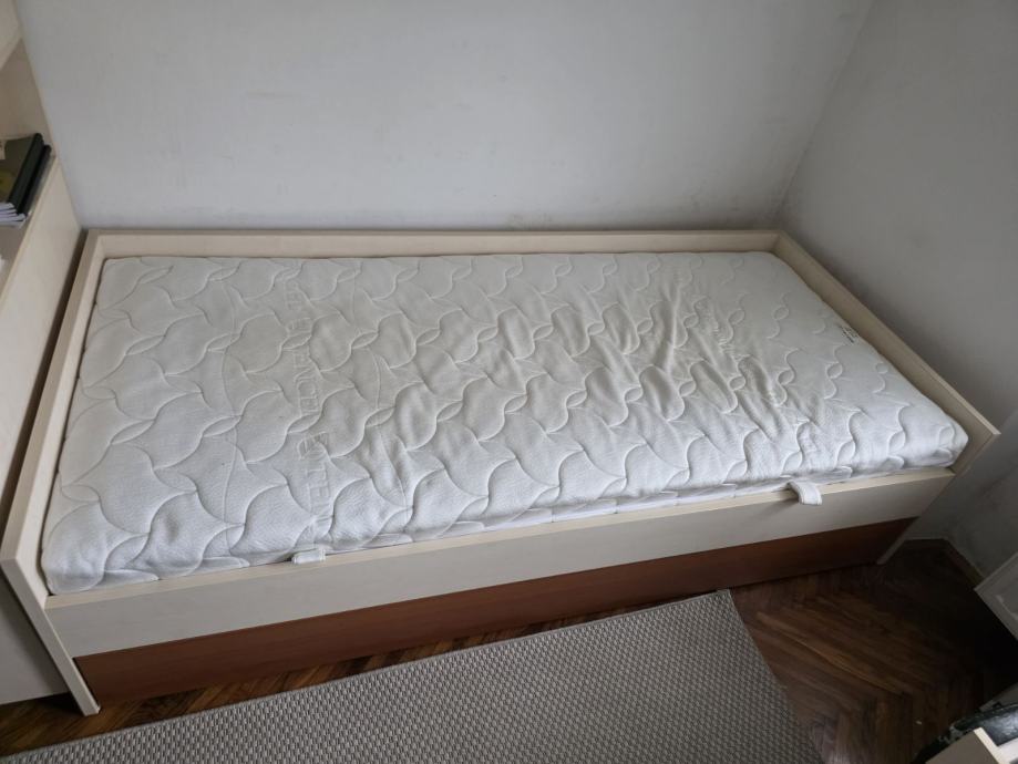 Prodajem dva kreveta dimenzija 200x90 cm s povišene 3 stranice, idealno za smještaj uza zid.