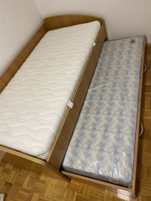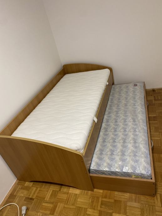 Dvostruki krevet na razvlacenje s dva madraca, u odlicnom stanju. Donji madrac nikad koristen, gornji jako malo.