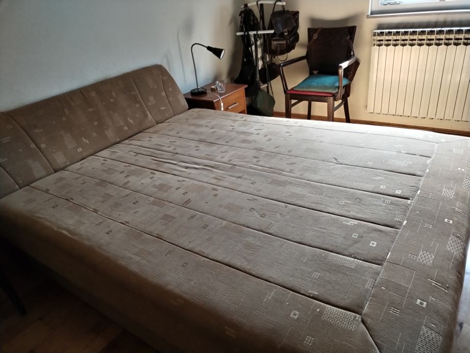 Prrodajem tapecirani francuski ležaj 160x200, uščuvan, rabljen oko 10 godina, sa spremnikom ispod cijele duljine ležaja. Javit se na 098 358 697. Transport organizira kupac. Cijena 30 Eur.