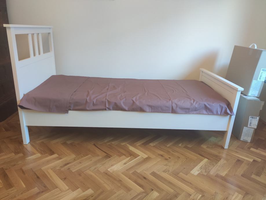 Prodajemo Hemnes krevet za jednu osobu. S Lonset podnicom (fiksna, na okviru, nije rolana) i tvrdim madracem od pjene visine 12cm /Afjall/.