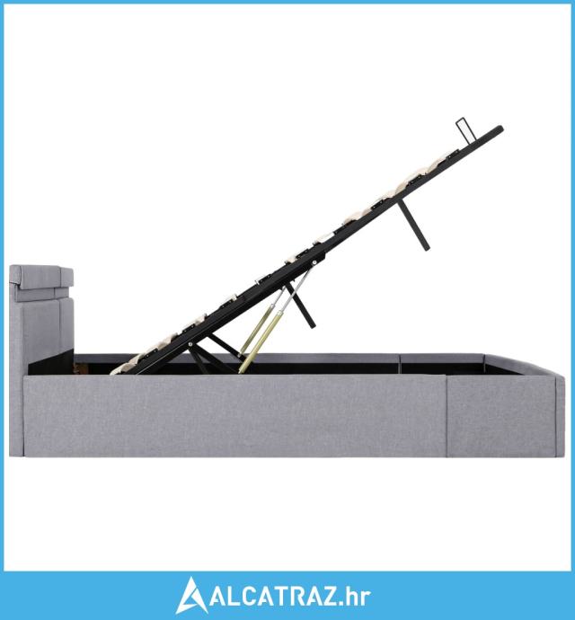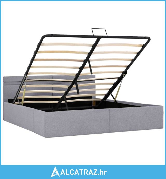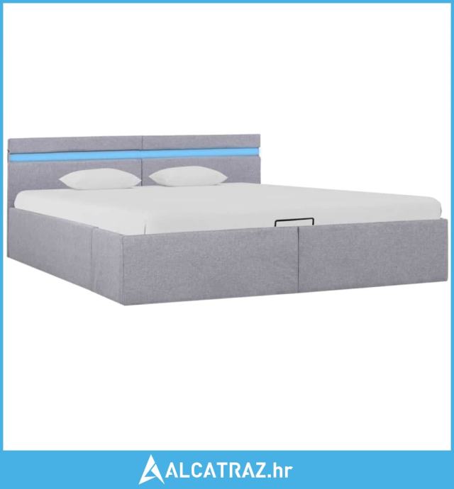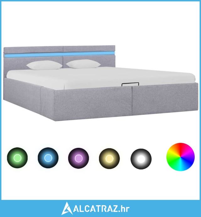 Hidraulični okvir za krevet LED svjetlosivi tkanina 180x200 cm - NOVO
