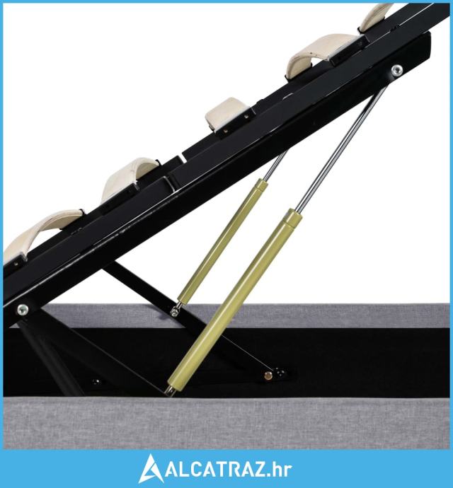 Ovaj presvučeni krevet pretvara neiskorišteni prostor ispod madraca u prostor za pohranu, s dovoljno mjesta za spremanje odjeće, plahti, pokrivača itd. Hidraulični plinski mehanizam čini dizanje madraca jednostavnim. Podnice će ostati uspravne kad se podignu kako bi vam obje ruke bile slobodne za uklanjanje ili pohranu predmeta ispod.