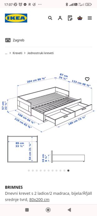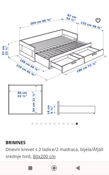 Krevet je dimenzija 80x200, odnosno 160x200 kad se raširi.