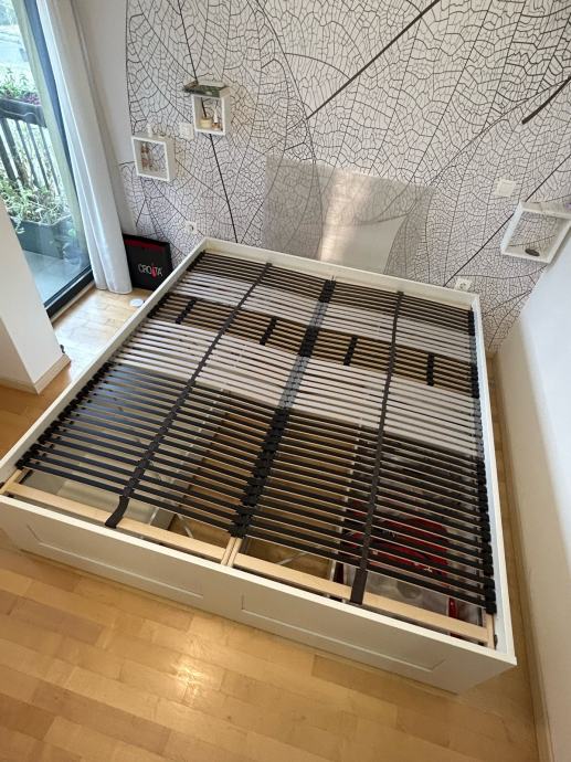Prodajemo bijeli (BRIMNES) krevet 180 x 200 cm sa 4 ladice i podnicama (LEIRSUND).