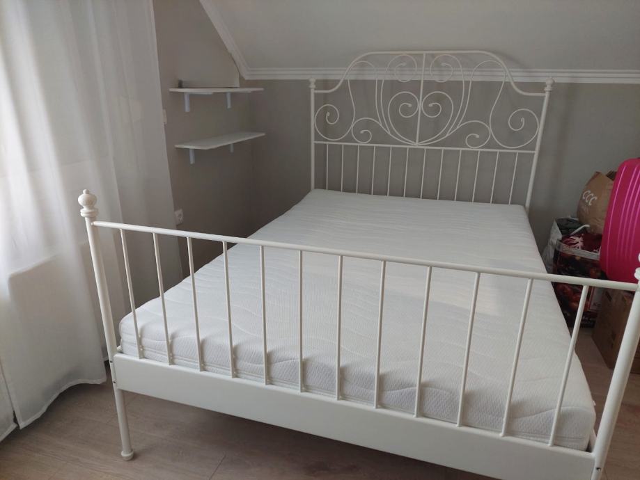 Krevet u izvrsnom stanju, IKEA LEIRVIK, dimenzije 140x200. Dolazi s vrhunskim madracem 15 cm i podnicom.