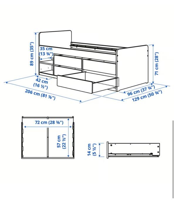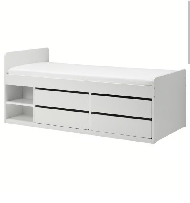 Ikea krevet s podnicom i spremnikom i madrac Dreams, dimenzije 90x200, kao novo.