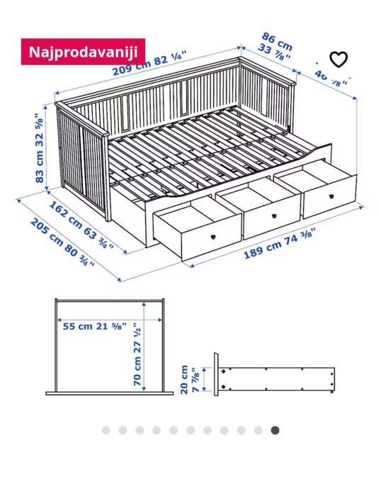 Prodajem krevet Ikea 80x200 na razvlačenje bez madraca sa tri ladice, star 3 godine