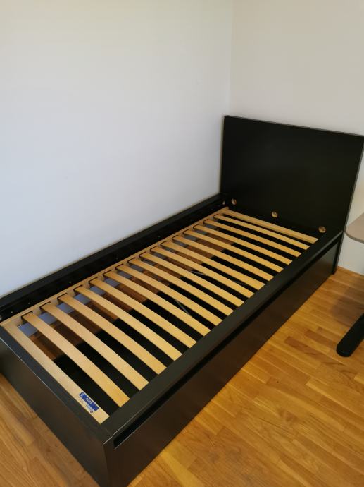Prodajem krevet iz IKEA-e sa krutom podnicom i 2 kutije za pohranu na kotačima (crni).