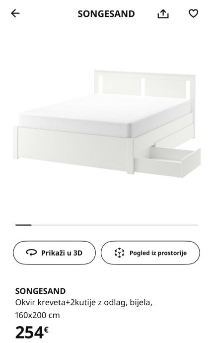 Ikea SONGESAND bijeli krevet u velicini 160x200 cm