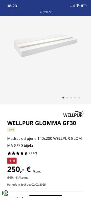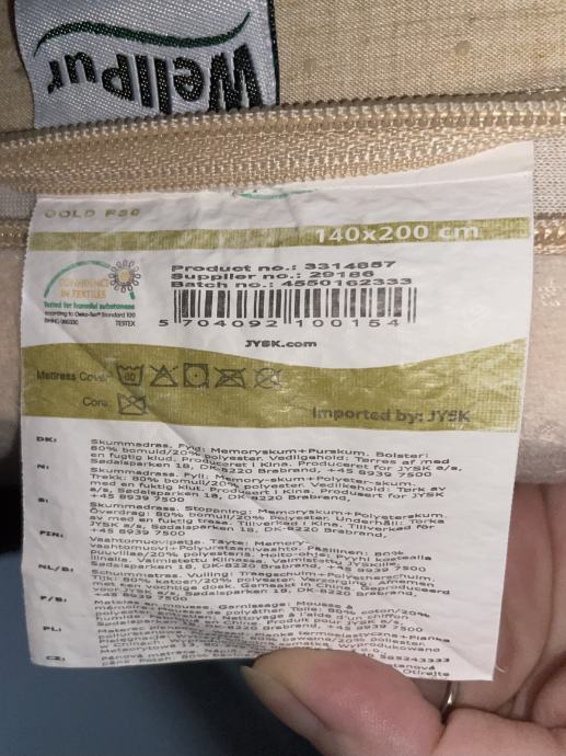 Inace puna cijena u jysku okvira je 259e, a madrac je trenutno na akciji 250e dok mu je inace puna cijena 649e jer je to ona njihova kvalitetnija gold linija proizvoda(uslikana etiketa)