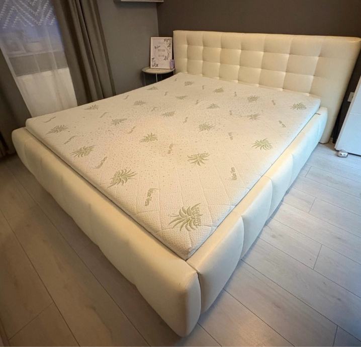 Prodajem bračni krevet bijele boje dimenzija 200x200cm u odličnom stanju bez oštećenja. Uz krevet dolaze podnice i madrac Aloe Vera. Ispod kreveta ima mjesta za pohranu stvari.