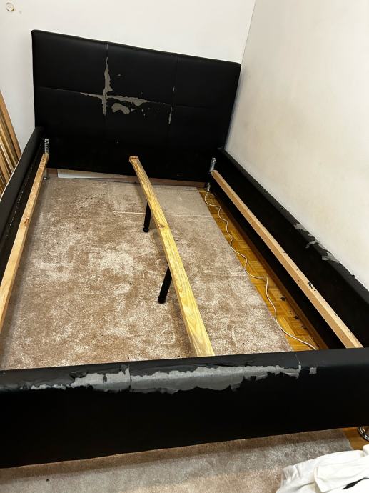 Podnice i madrac su u odlicnom stanju, okvir kreveta ima ostecenu presvlaku