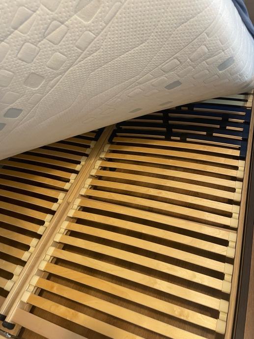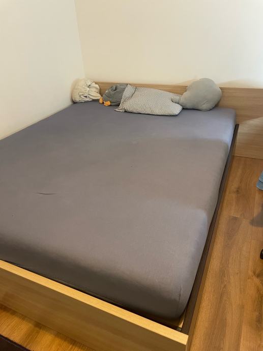 Krevet sa podnicama i madracem. Dimenzija 160 * 200. Uzglavlje ljeva strana prekrojena (odrezana). Korišten i krevet i madrac. Podnice su nove ….