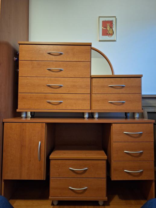 Krevet 180×200,noćni ormarići,ormar,radni stol +ogledalo,dvije komode.