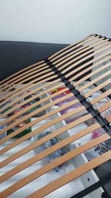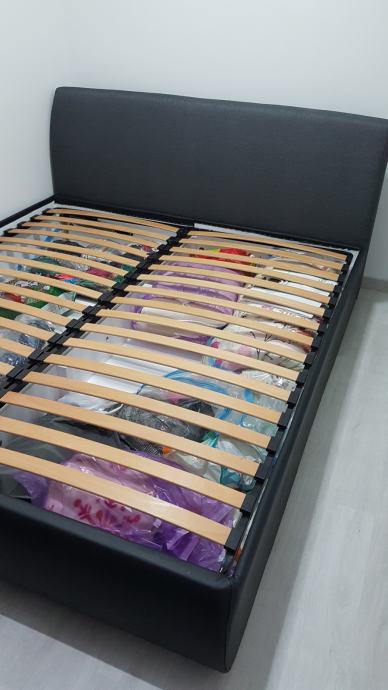 Krevet 180x200 kvalitetan krevet s prostorom za skladistenje i podnicom. Novo tapeciran . Moze se rastaviti u 3 djela. 2 kutije 90x200 i uzglavlje .