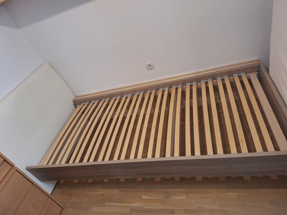 Prodaje se očuvan krevet s podnicama i madracem veličine 90×200.