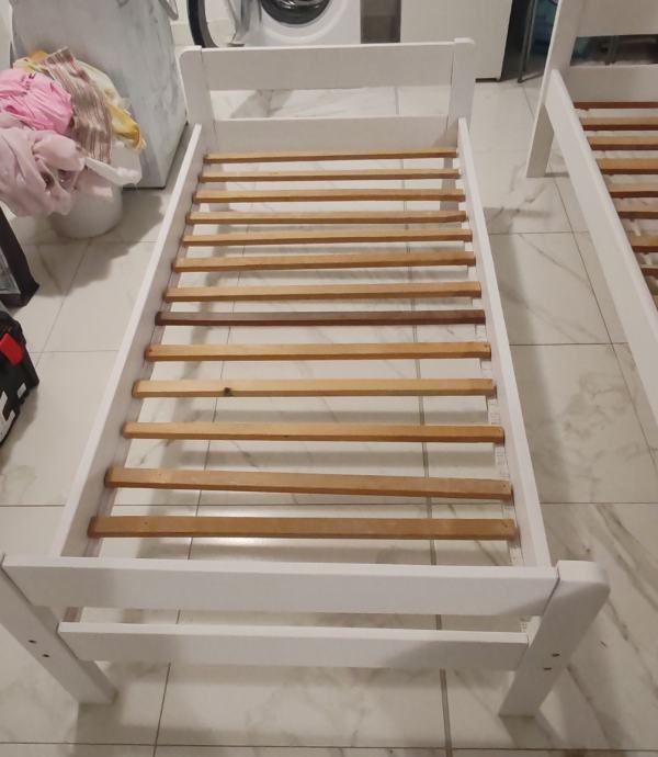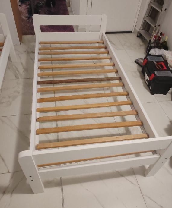 Krevet 90x190 cm za jednu osobu, bijela boja, slabo korišten i u dobrom stanju.