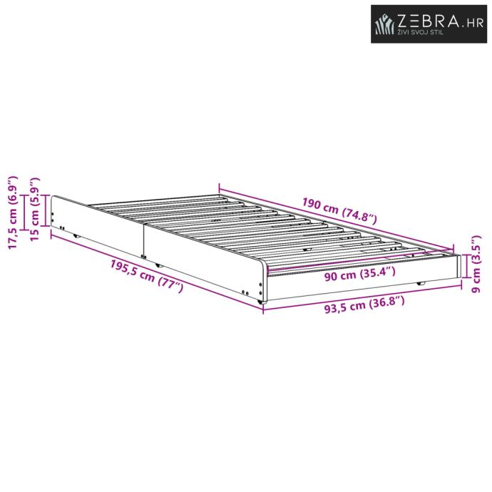 Veličina madraca: Kratki jednostruki (90 cm x 190 cm / 35" x 75")