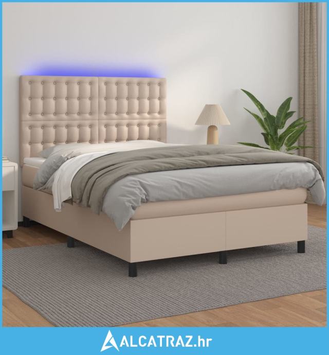 Krevet box spring madrac LED cappuccino 140x200cm umjetna koža - NOVO