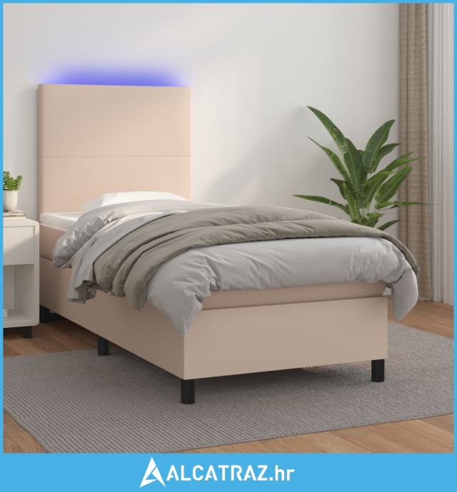 Krevet box spring madrac LED cappuccino 90x200cm umjetna koža - NOVO