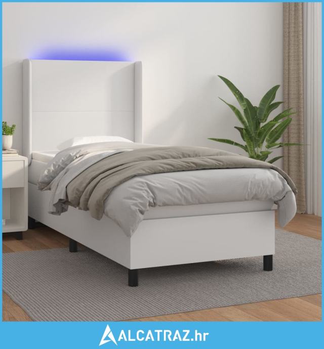 Krevet box spring s madracem LED bijeli 100x200 cm umjetna koža - NOVO