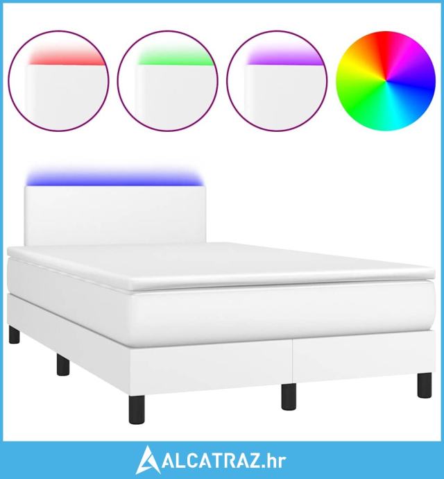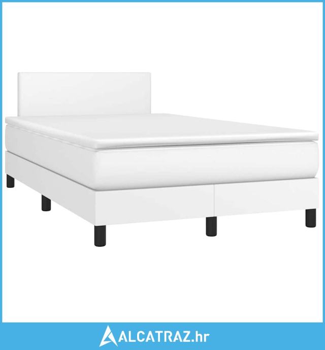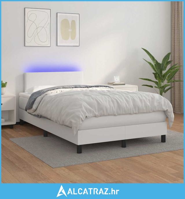 Krevet box spring s madracem LED bijeli 120x190 cm umjetna koža - NOVO