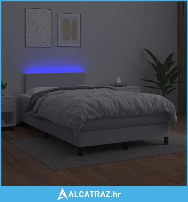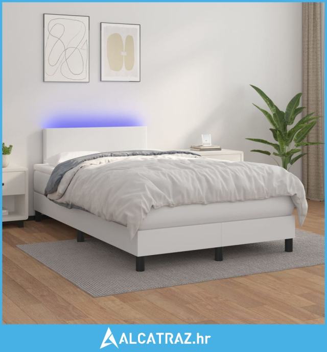 Krevet box spring s madracem LED bijeli 120x200 cm umjetna koža - NOVO
