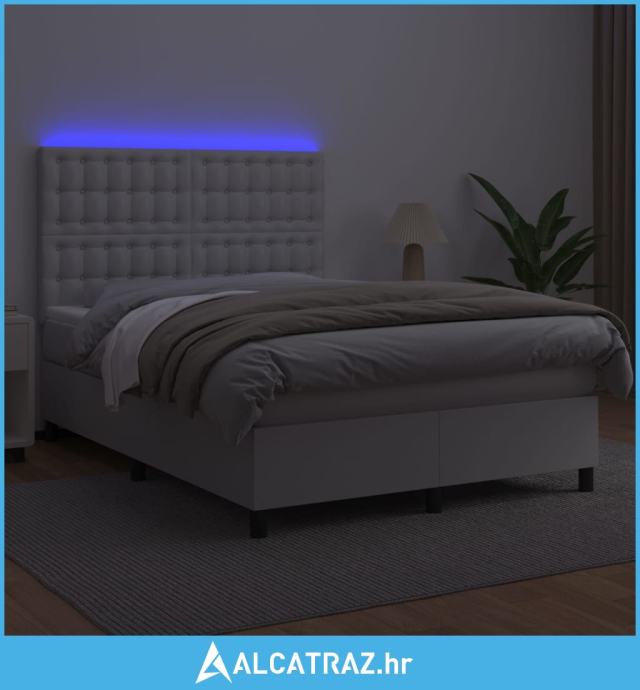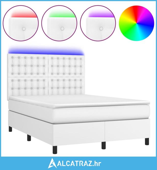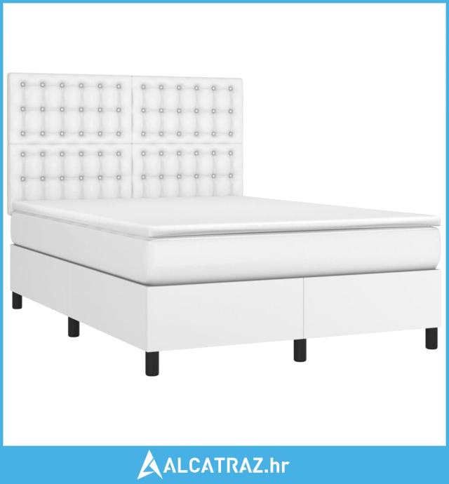 Krevet box spring s madracem LED bijeli 140x190 cm umjetna koža - NOVO