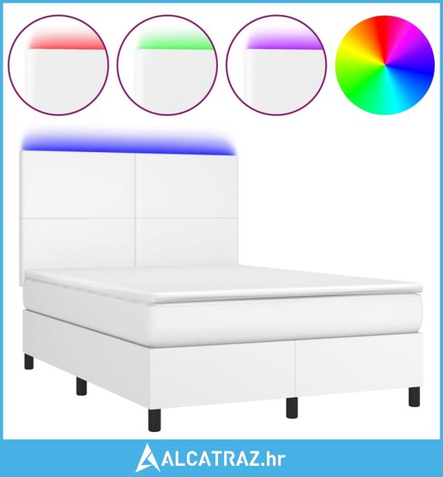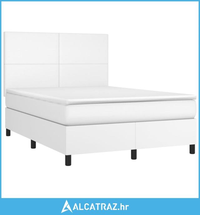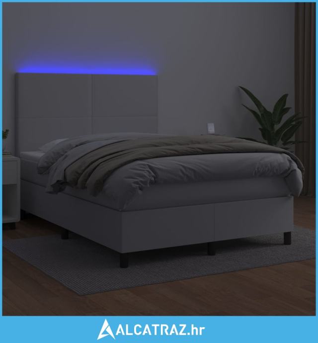 Krevet box spring s madracem LED bijeli 140x190 cm umjetna koža - NOVO