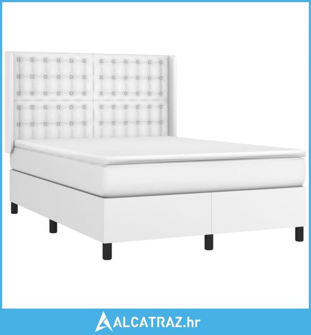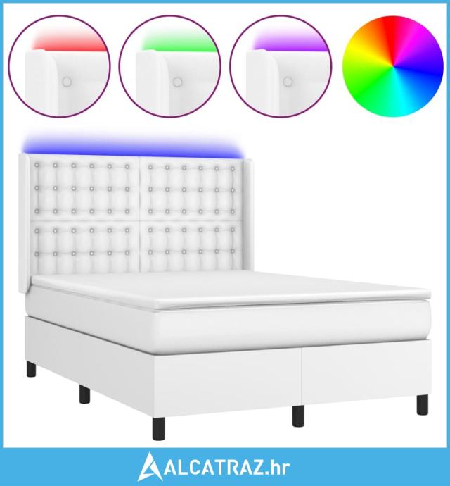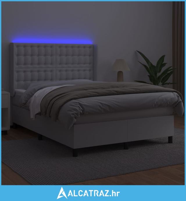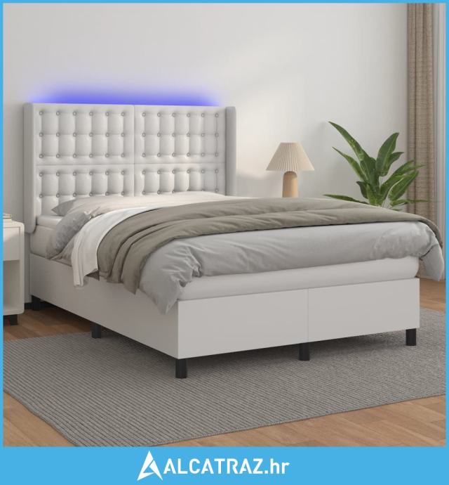 Krevet box spring s madracem LED bijeli 140x190 cm umjetna koža - NOVO