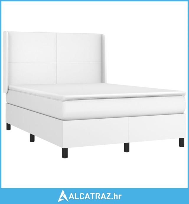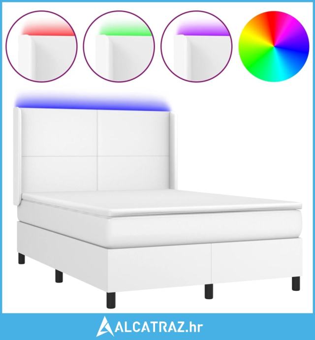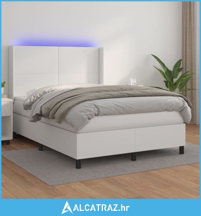 Krevet box spring s madracem LED bijeli 140x200 cm umjetna koža - NOVO