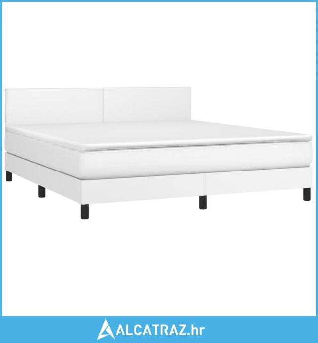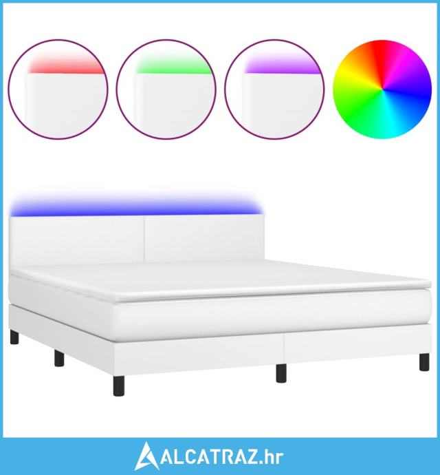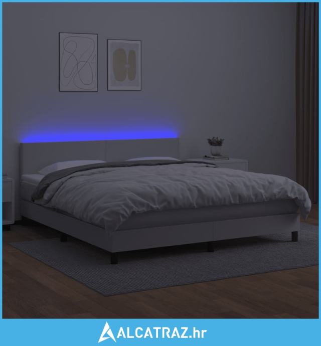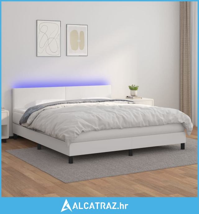 Krevet box spring s madracem LED bijeli 180x200 cm umjetna koža - NOVO