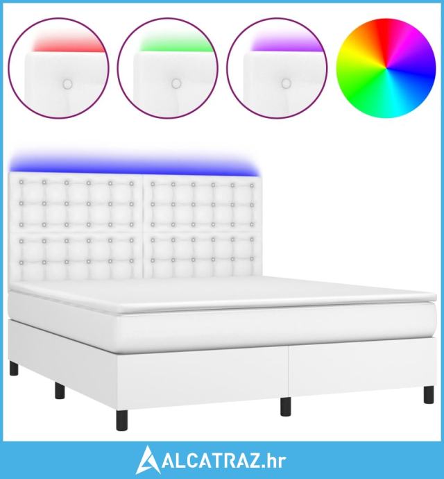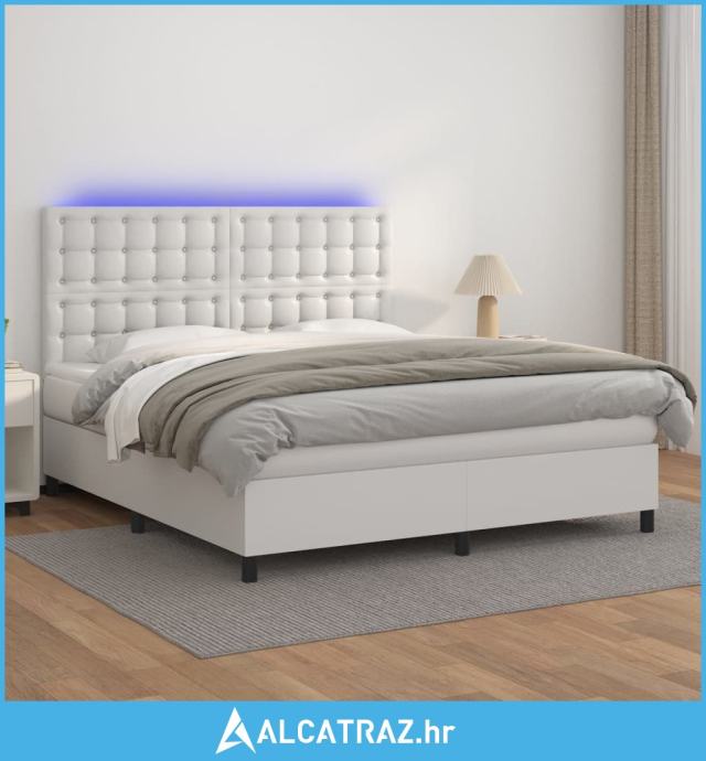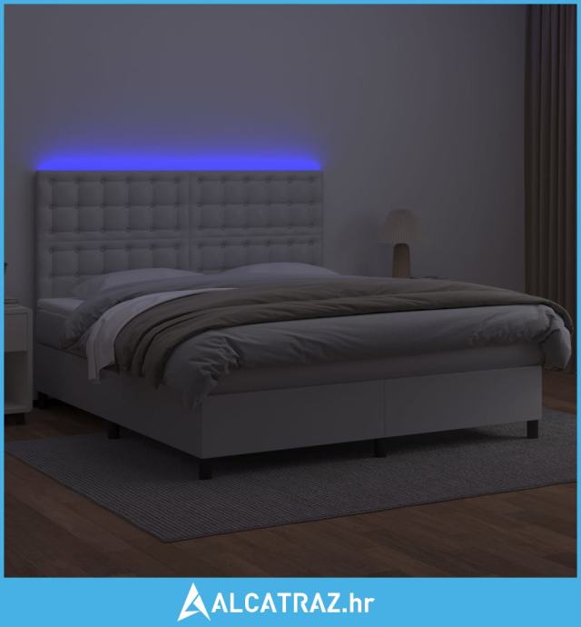 Krevet box spring s madracem LED bijeli 180x200 cm umjetna koža - NOVO