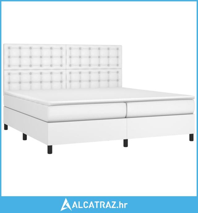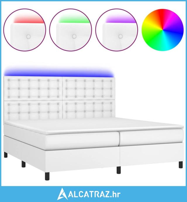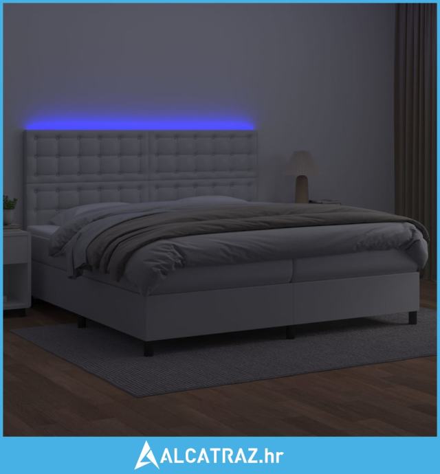 Krevet box spring s madracem LED bijeli 200x200 cm umjetna koža - NOVO