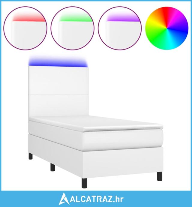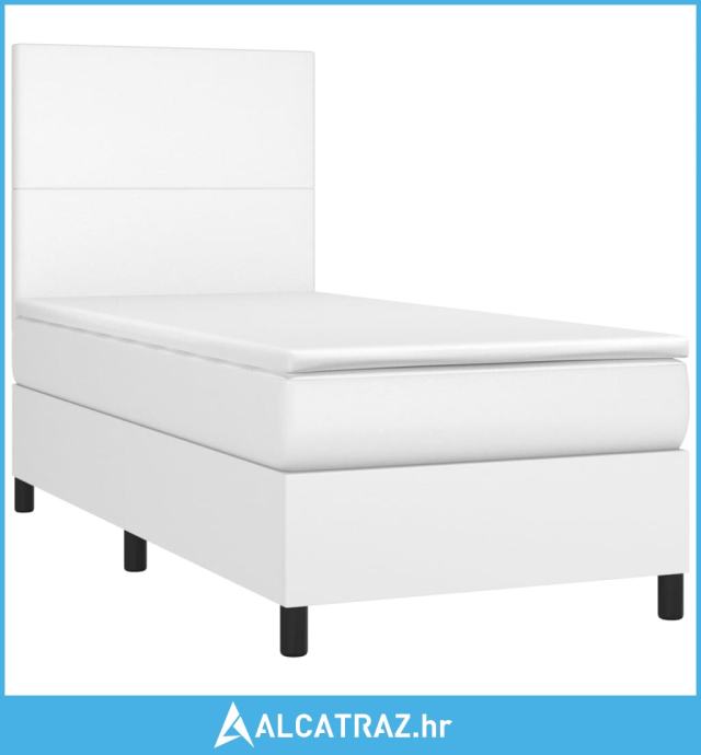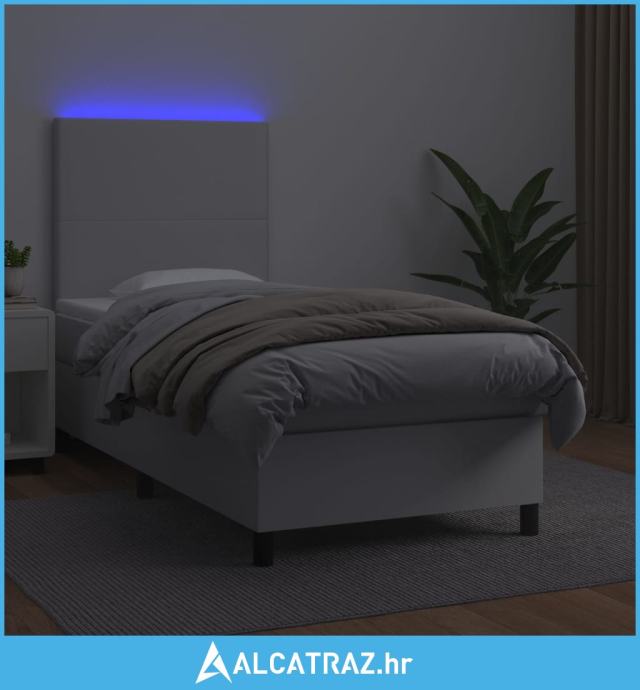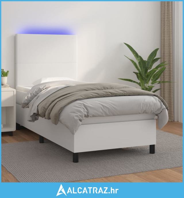 Krevet box spring s madracem LED bijeli 90x200 cm umjetna koža - NOVO
