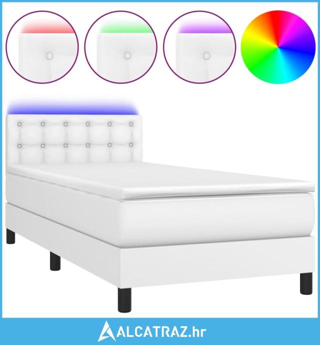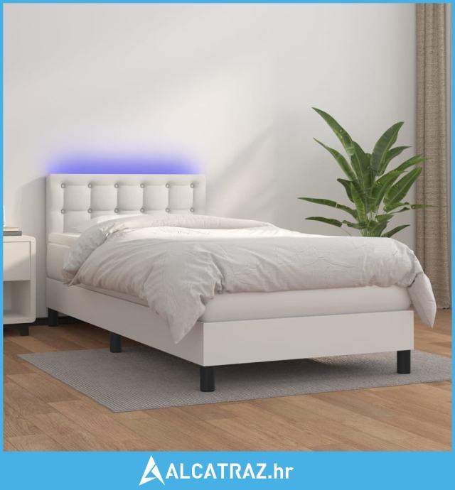 Krevet box spring s madracem LED bijeli 90x200 cm umjetna koža - NOVO