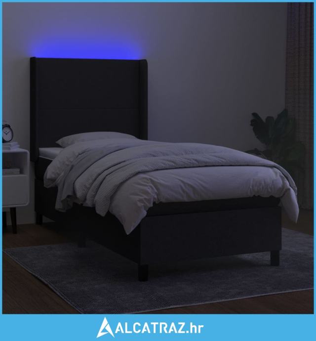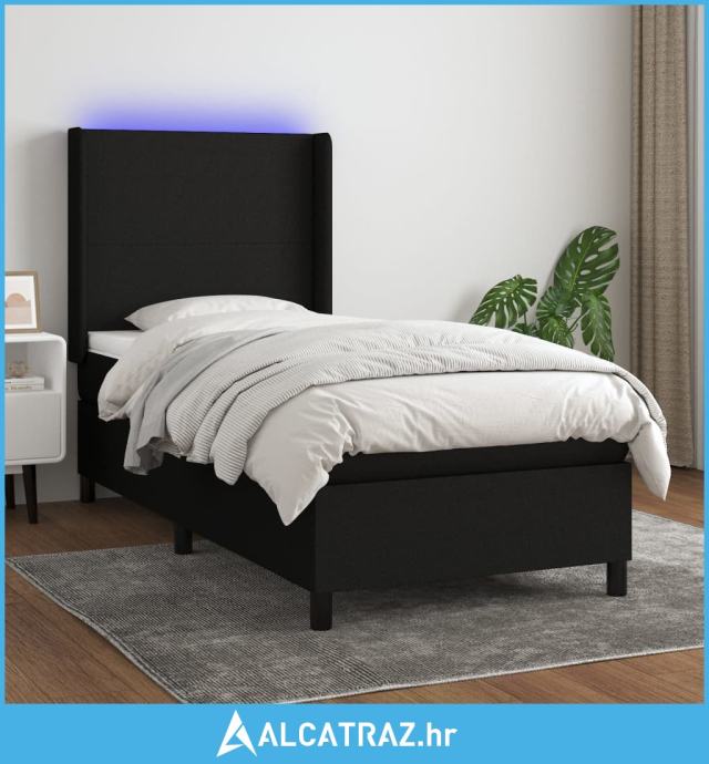 Krevet box spring s madracem LED crni 100x200 cm od tkanine - NOVO