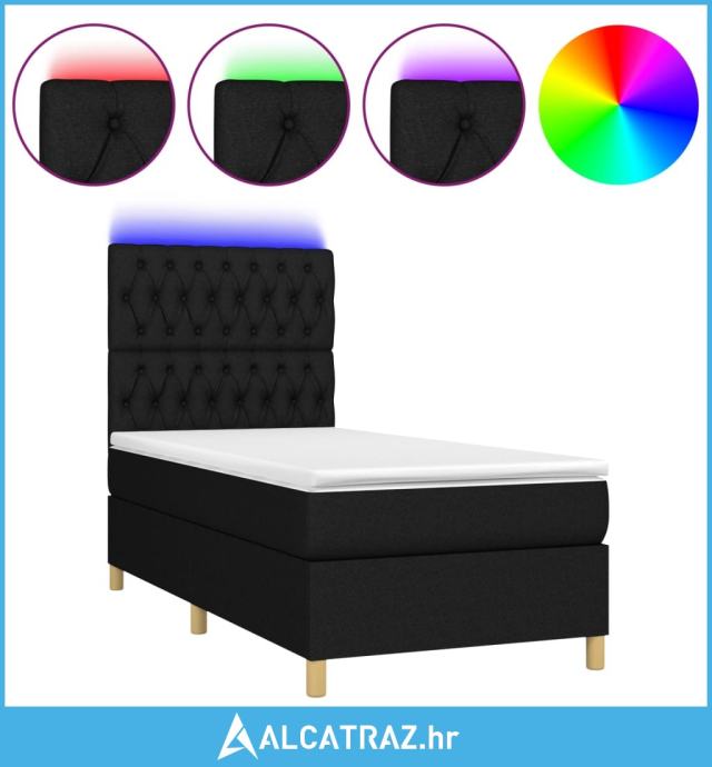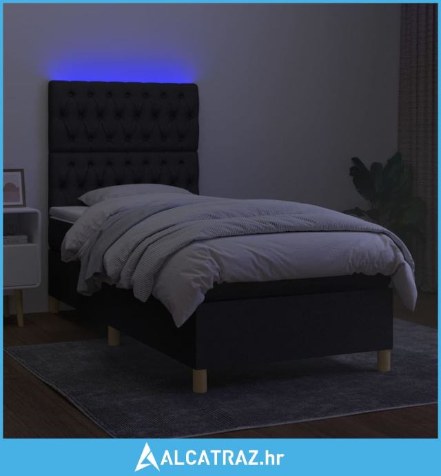 Krevet box spring s madracem LED crni 100x200 cm od tkanine - NOVO