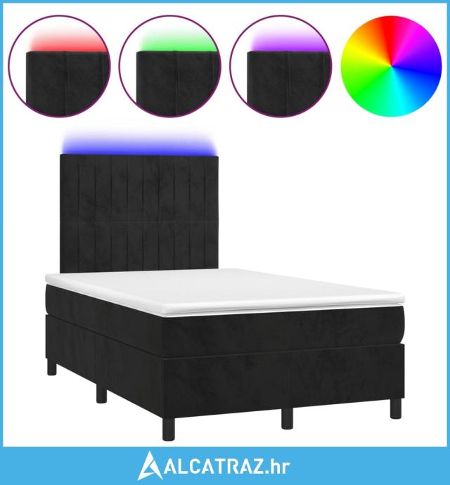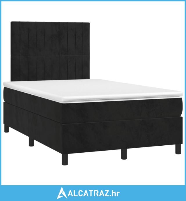 Krevet box spring s madracem LED crni 120 x 200 cm baršun - NOVO