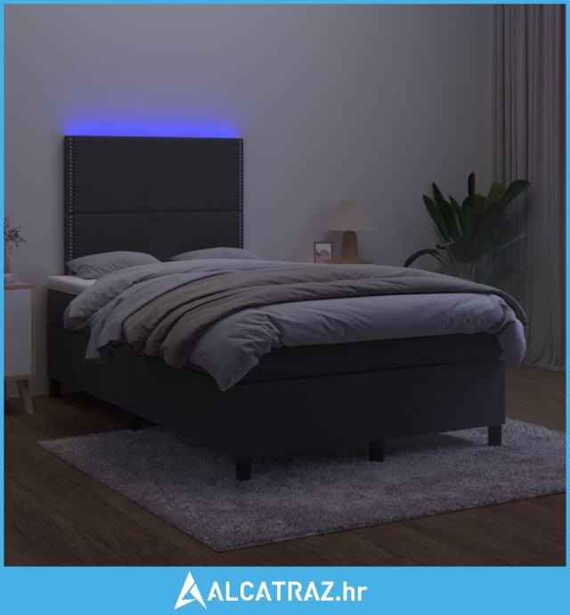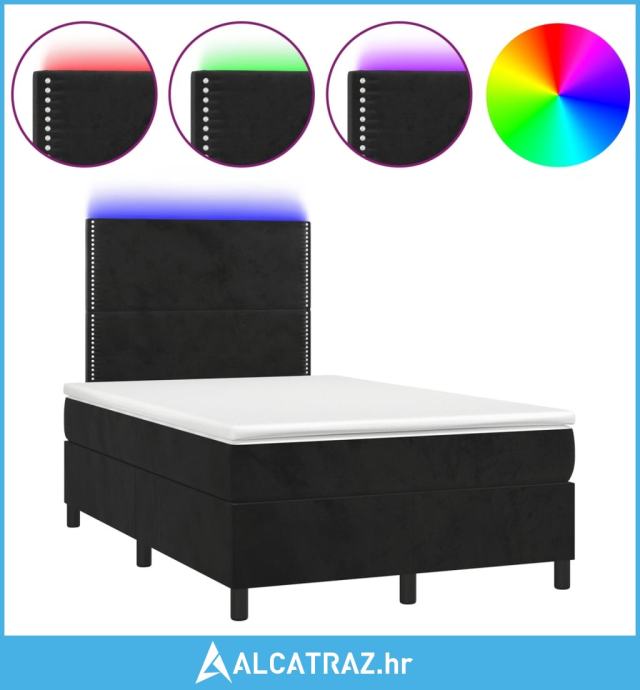 Krevet box spring s madracem LED crni 120 x 200 cm baršun - NOVO