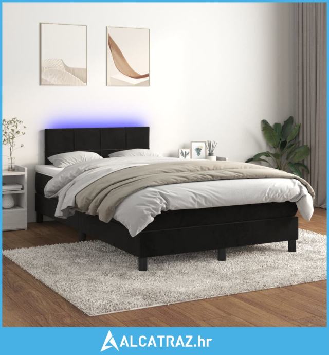 Krevet box spring s madracem LED crni 120 x 200 cm baršun - NOVO