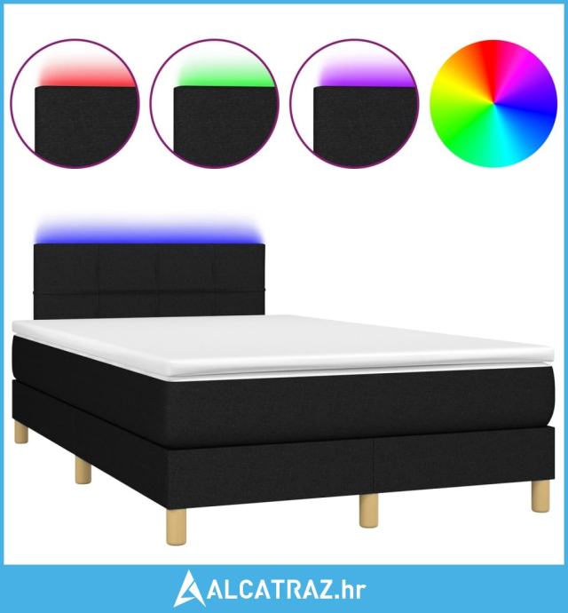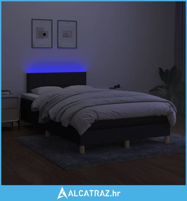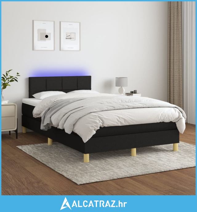 Krevet box spring s madracem LED crni 120 x 200 cm od tkanine - NOVO