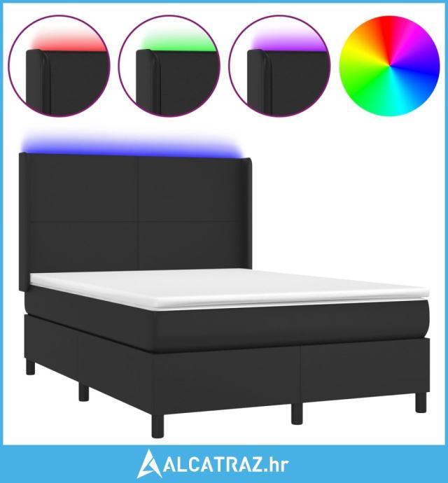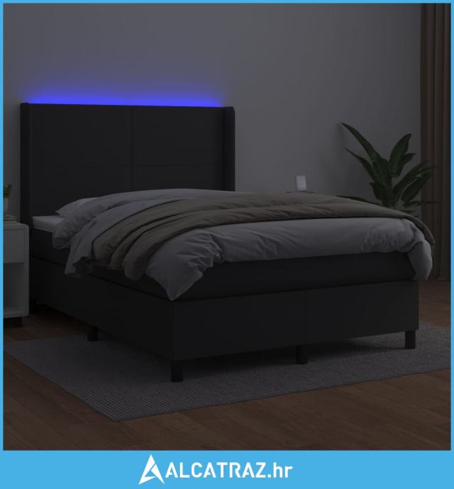 Krevet box spring s madracem LED crni 140 x 190 cm umjetna koža - NOVO