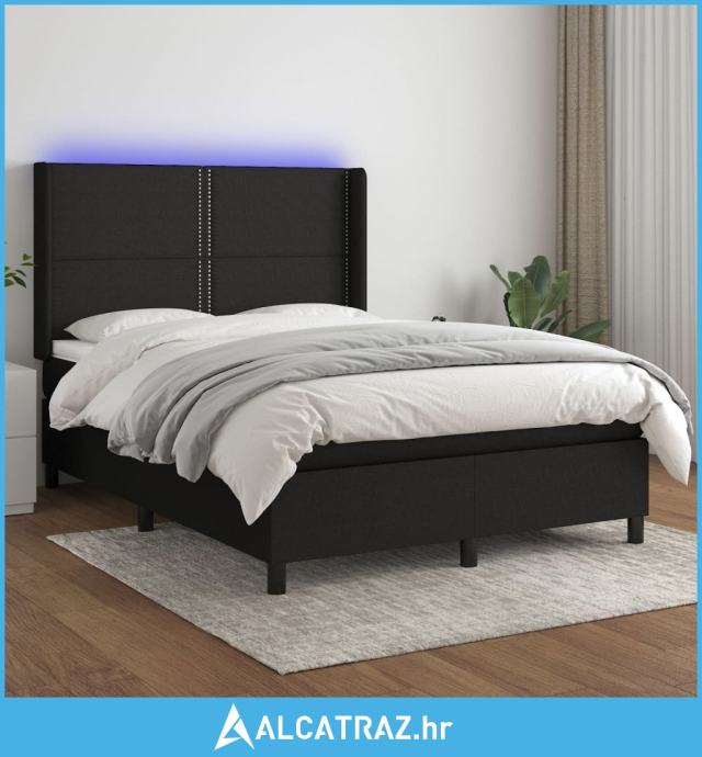 Krevet box spring s madracem LED crni 140x190 cm od tkanine - NOVO