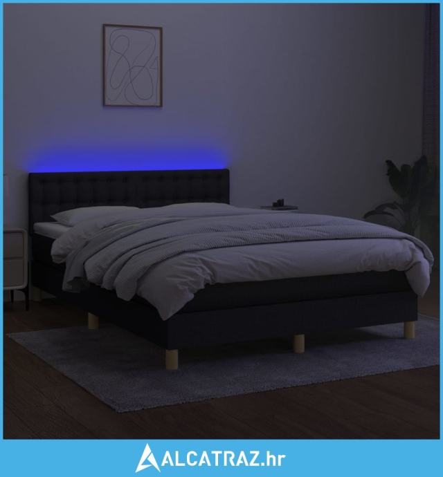 Krevet box spring s madracem LED crni 140x190 cm od tkanine - NOVO