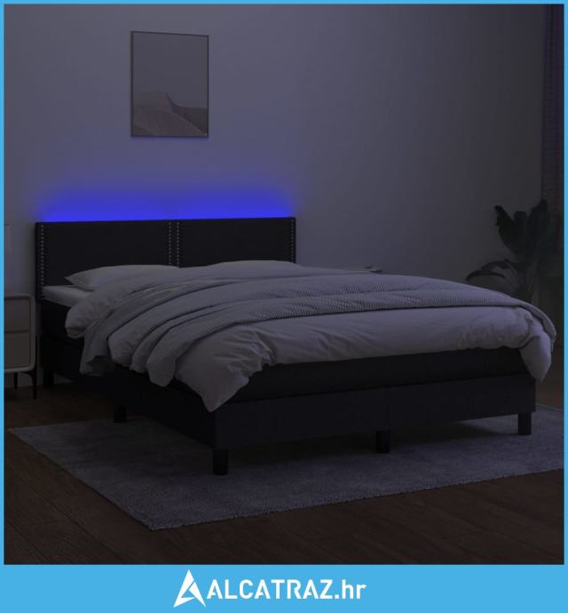 Krevet box spring s madracem LED crni 140x190 cm od tkanine - NOVO