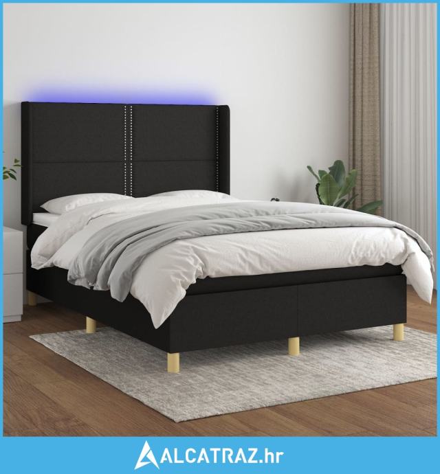 Krevet box spring s madracem LED crni 140x200 cm od tkanine - NOVO