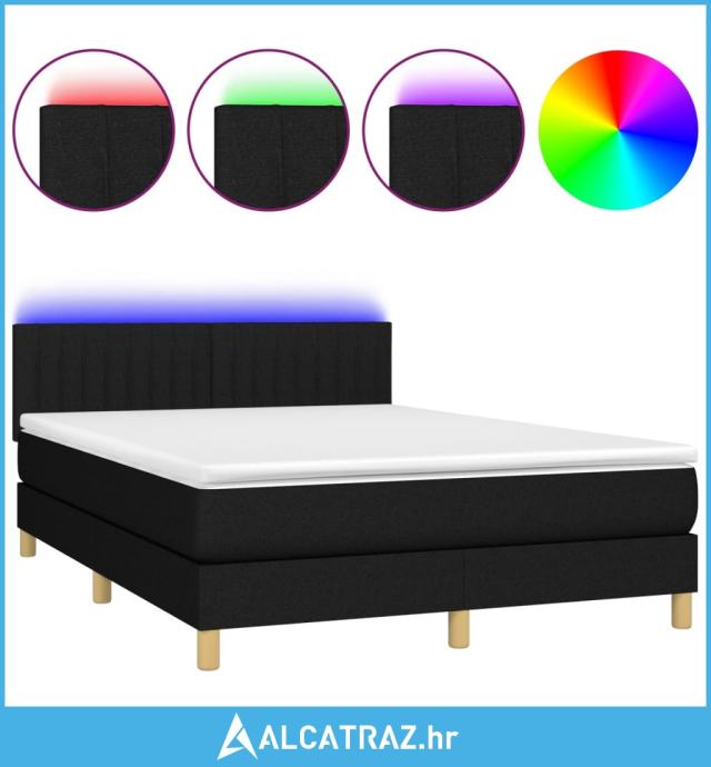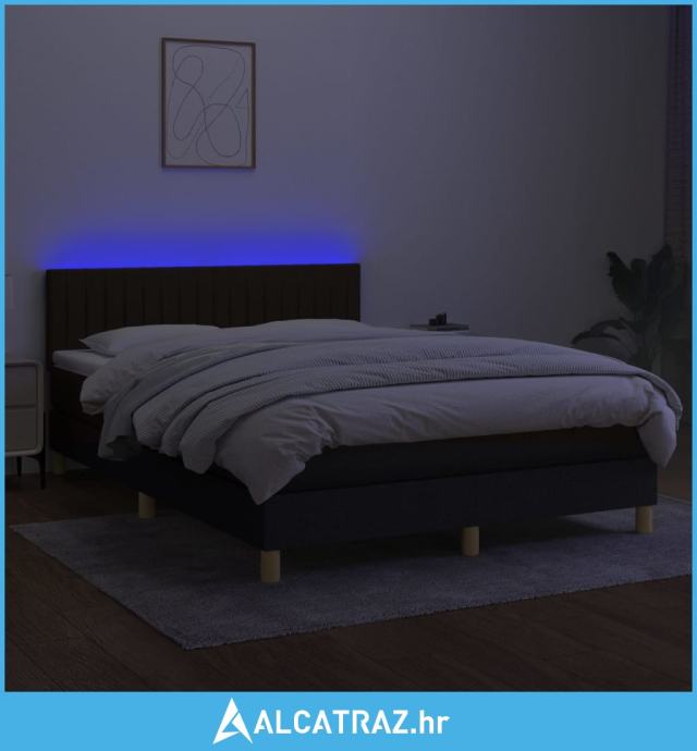 Krevet box spring s madracem LED crni 140x200 cm od tkanine - NOVO