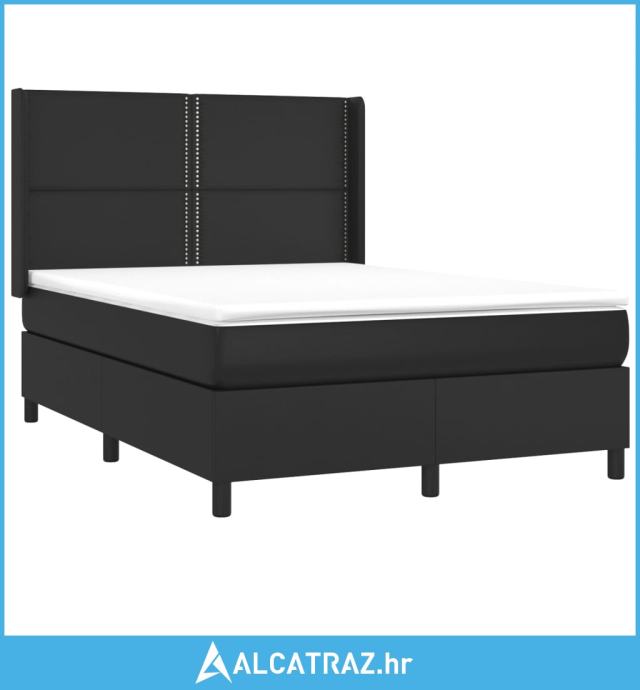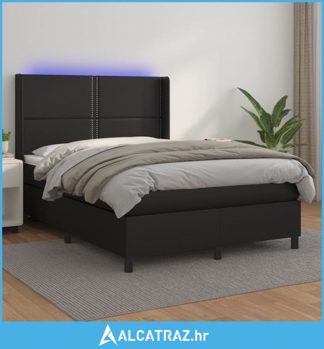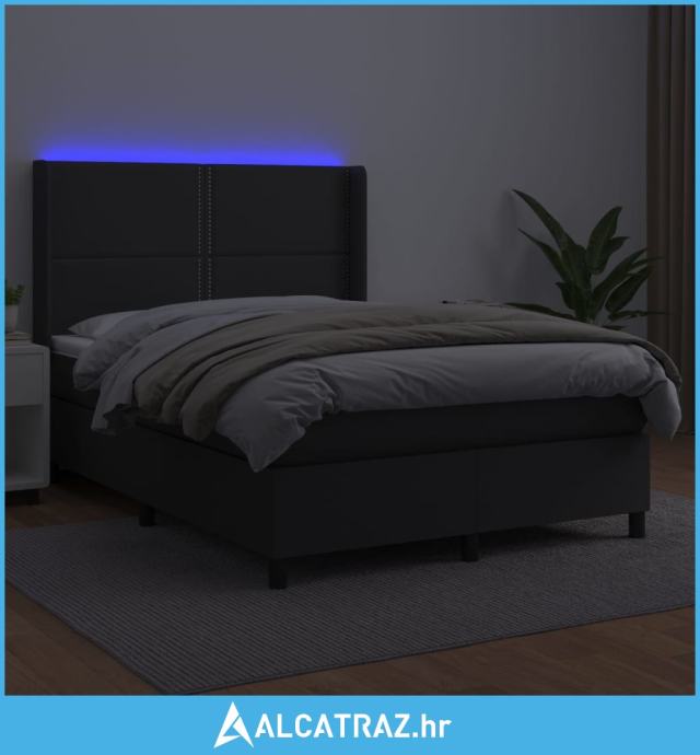 Krevet box spring s madracem LED crni 140x200cm od umjetne kože - NOVO